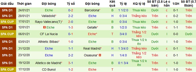 + Thống kê 10 trận gần nhất của Elche