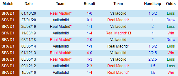 + Lịch sử đối đầu Valladolid vs Real Madrid