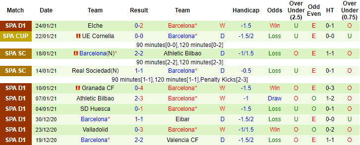 + Thống kê 10 trận gần nhất của Barcelona