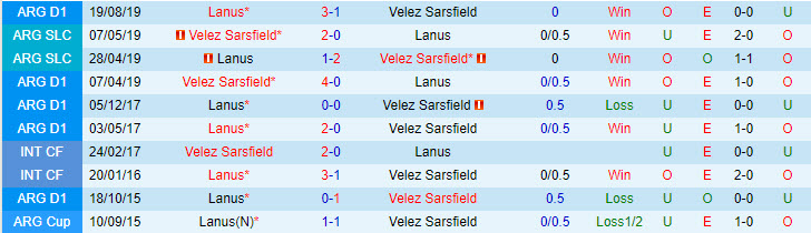 + Lịch sử đối đầu Velez Sarsfield vs Lanus