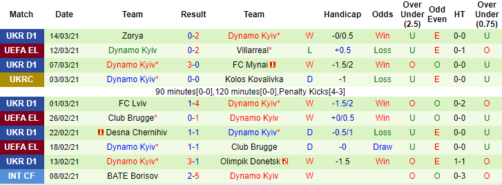 + Thống kê 10 trận gần nhất của Dynamo Kyiv