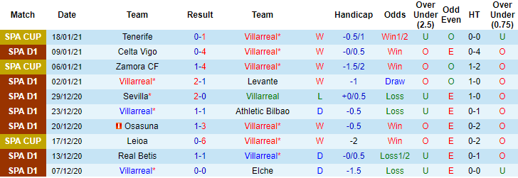+ Thống kê 10 trận gần nhất của Villarreal