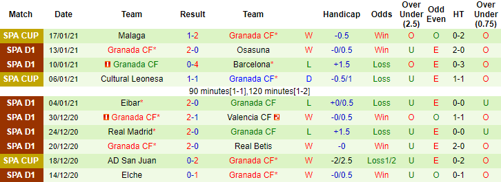 + Thống kê 10 trận gần nhất của Granada