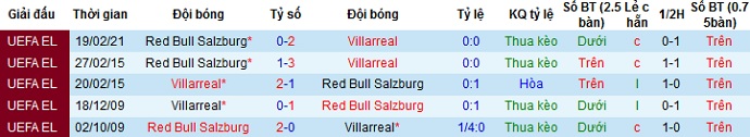 + Lịch sử đối đầu Villarreal vs Salzburg