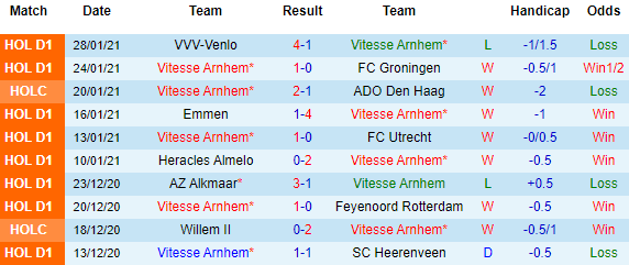 + Thống kê 10 trận gần nhất của Vitesse Arnhem