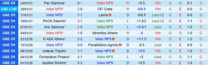 + Thống kê 10 trận gần nhất của Volos