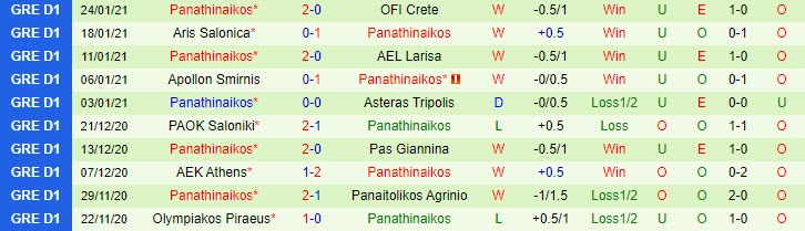 + Thống kê 10 trận gần nhất của Panathinaikos