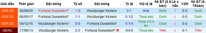 + Lịch sử đối đầu Würzburger Kickers vs Fortuna Düsseldorf