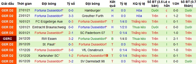 + Thống kê 10 trận gần nhất của Fortuna Düsseldorf