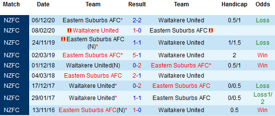 + Lịch sử đối đầu Waitakere vs Eastern Suburbs