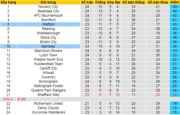 Sau 23 vòng đấu, Watford đang có mặt ở vị trí thứ 5 trên BXH với 40 điểm. Trong khi đó, Barnsley đang chỉ đứng ở vị trí thứ 10 và họ lại đang có cho mình 34 điểm. Khoảng cách 6 điểm rõ ràng là khoảng cách không hề lớn và đội chủ nhà Watford cần thi đấu thực sự cẩn trọng ở trận này.