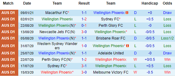 + Thống kê 10 trận gần nhất của Wellington Phoenix