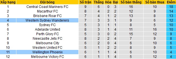 Trong khi đó Western Sydney Wanderers đang đứng thứ tư trên bảng xếp hạng với 12 điểm sau 7 vòng đấu. Hiện tại Sydney Wanderers chỉ đang kém đội thứ nhì và thứ ba cùng 2 điểm nhưng đang thi đấu ít hơn từ 1 đến 2 trận.