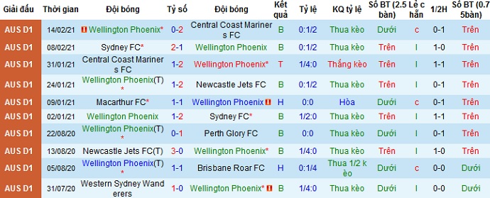 + Thống kê 10 trận gần nhất của Wellington Phoenix