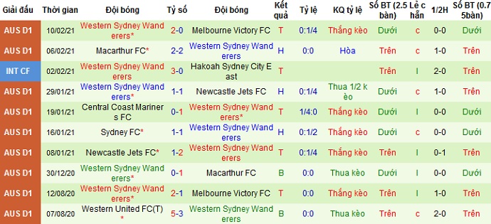 + Thống kê 10 trận gần nhất của Sydney Wanderers