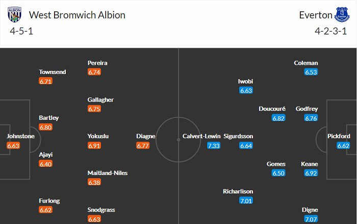 Đội hình dự kiến West Brom 1-3 Everton