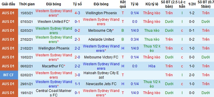 + Thống kê 10 trận gần nhất của Western Sydney