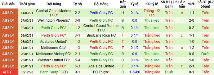 + Thống kê 10 trận gần nhất của Perth Glory