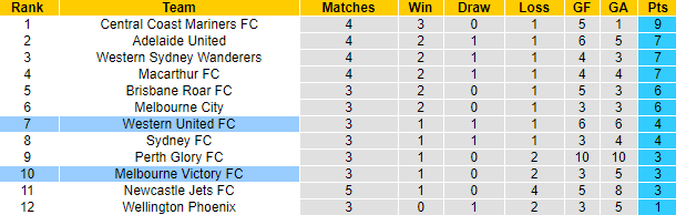 Phong độ và thống kê đối đầu Western United vs Melbourne Victory