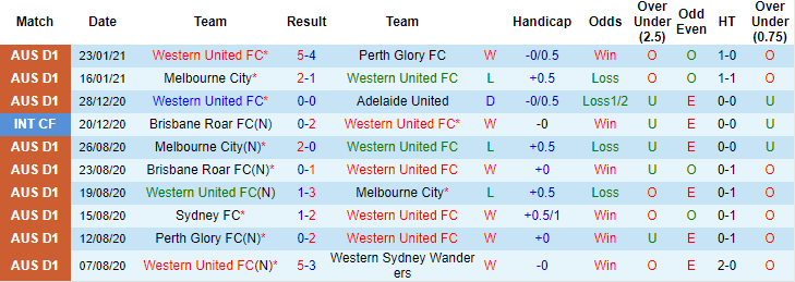 Western United toàn thắng cả 3 trận đối đầu Melbourne Victory trước đó trong khuôn khổ giải VĐQG Australia. Tuy nhiên ở trận đấu sắp tới, dù có lợi thế sân nhà, Western United vẫn không được giới chuyên gia tin tưởng vào khả năng giành chiến thắng.