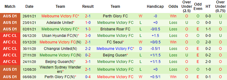 + Thống kê 10 trận gần nhất của Melbourne Victory