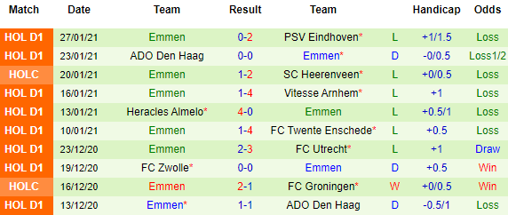+ Thống kê 10 trận gần nhất của Emmen