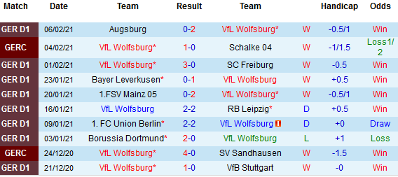 + Thống kê 10 trận gần nhất của Wolfsburg