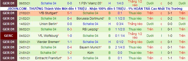 + Thống kê 10 trận gần nhất của Schalke 04