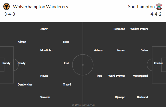 Theo đó, Wolves có đầy đủ quân số để sắp xếp một đội hình ưng ý nhất tiếp đón Southampton. Ngược lại, Southampton có tới 6 cầu thủ chắc chắn không thể ra sân vì chấn thương và án treo giò gồm: Theo Walcott, Ibrahima Diallo, Michael Obafemi, William Smallbone, Alexandre Jankewitz và Takumi Minamino.