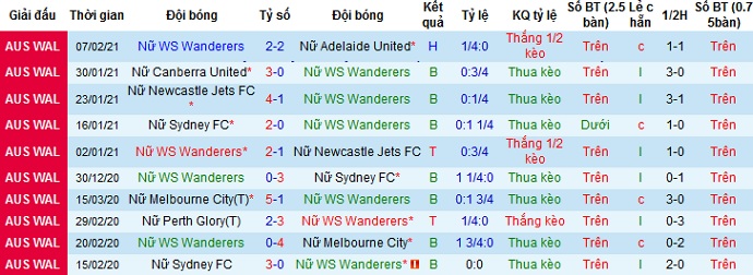+ Thống kê 10 trận gần nhất của WS Wanderers (W)
