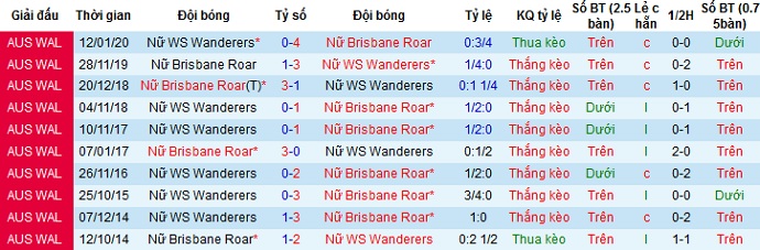 Lý do là vì WS Wanderers (W) trên sân nhà đều để thua trước Brisbane Roar (W) trong cả 6 lần gặp nhau trước đó, trong đó ở mùa giải trước họ đã thua với tỷ số 0-4. Trong khi WS Wanderers (W) chưa có được phong độ tốt nhất thì Brisbane Roar (W) đang chơi càng lúc càng tốt nên có lẽ chọn cửa trên ở trận đấu này vẫn có phần hợp lý.