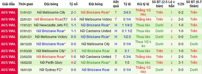 + Thống kê 10 trận gần nhất của Brisbane Roar (W)