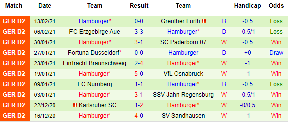 + Thống kê 10 trận gần nhất của Hamburger