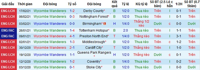 Ở 5 trận đấu gần đây cho dù đã rất nỗ lực thì Wycombe cũng chỉ có được 1 trận thắng, 1 trận hòa và để thua 3 trận. Thành tích sân nhà của đội bóng cũng chẳng tốt hơn với 1 trận thắng, 1 trận hòa và 3 trận thua ở 5 trận gần nhất tại đây, trong đó đội bóng đang để thua ở 2 trận gần nhất.