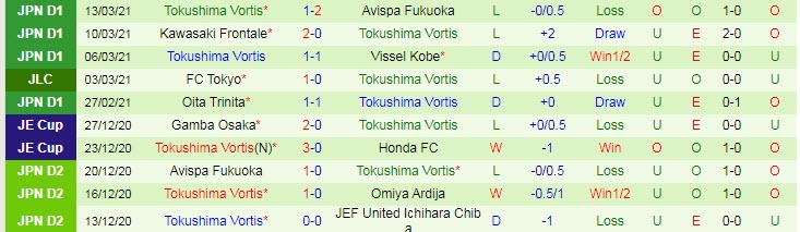 + Thống kê 10 trận gần nhất của Tokushima Vortis