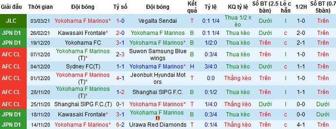 + Thống kê 10 trận gần nhất của Yokohama Marinos