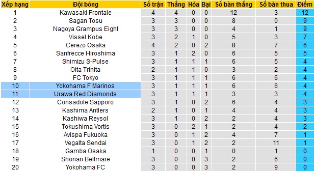 Bảng xếp hạng J-League vòng 4