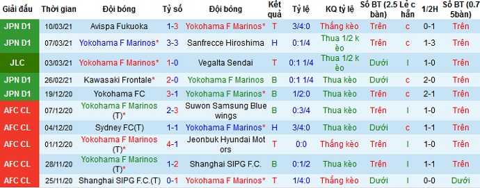 + Thống kê 10 trận gần nhất của Yokohama Marinos