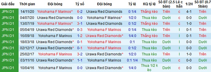 Lý do là bởi trong cả 2 lần gặp nhau gần nhất khi Yokohama Marinos được thi đấu trên sân nhà họ đều giành chiến thắng với tỷ số cách biệt. Hiện tại Urawa Red Diamonds cũng đang có thành tích sân khách khá tệ nên có lẽ chọn cửa trên vẫn có phần an toàn và hợp lý hơn.