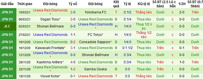 + Thống kê 10 trận gần nhất của Urawa Red Diamonds