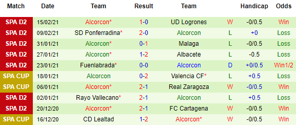 + Thống kê 10 trận gần nhất của Alcorcon
