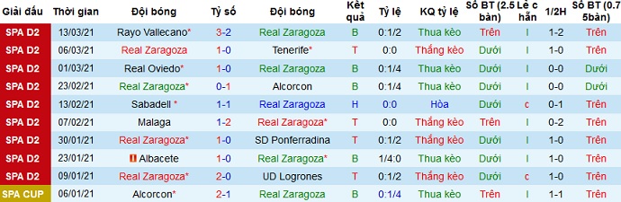 + Thống kê 10 trận gần nhất của Zaragoza