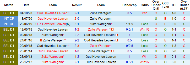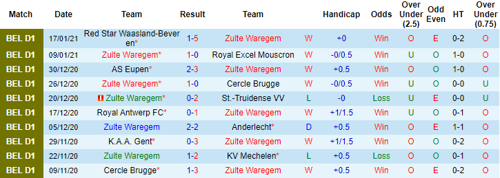 Trận đối đầu giai đoạn lượt đi giải VĐQG Bỉ mùa này, Zulte Waregem đã để thua với tỷ số 1-2 trên sân của OH Leuven. Đó cũng là trận thứ 3 liên tiếp OH Leuven khiến Zulte Waregem phải tay trắng rời cuộc chơi. Trên bảng xếp hạng giải VĐQG Bỉ 2020/21, Zulte Waregem đang xếp ở vị trí thứ 9, kém OH Leuven 2 bậc. Những thông tin đó đều cho thấy lợi thế dành cho OH Leuven.