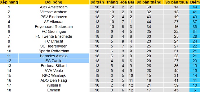 Sau 18 trận đã đấu, Zwolle có được 20 điểm và hơn nhóm các đội cầm đèn đỏ tới 7 điểm. Trong khi đó Heracles cũng chỉ có được 1 điểm nhiều hơn so với đối thủ và đang còn cách nhóm các đội có suất play-off dự cúp châu Âu cũng là 7 điểm.