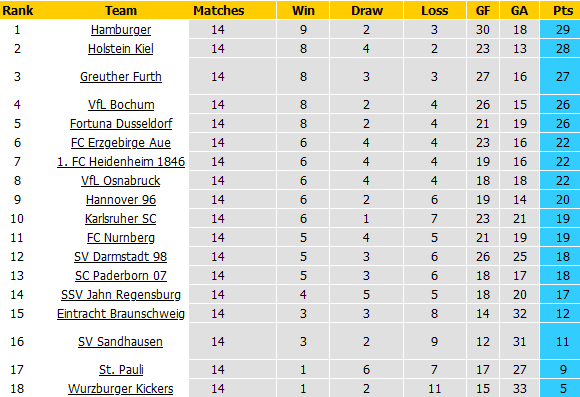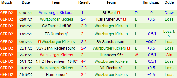 Từ đầu mùa, Wurzburger Kickers mới có duy nhất 1 trận thắng và 2 lần chia điểm, còn lại bị khuất phục tới 11 trận sau 14 vòng. Trên thực tế, Wurzburger Kickers cũng là cái tên gây thất vọng nhất giải trên khía cạnh tỷ lệ châu Á với 15.38% số trận vượt kèo từ đầu mùa.