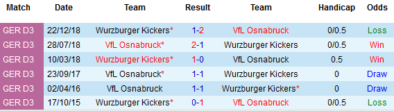 + Lịch sử đối đầu Osnabruck vs Wurzburger Kickers