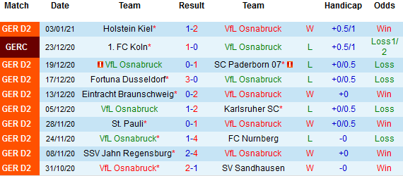 Trong 2 trận đối đầu gần nhất đều chứng kiến Osnabruck giành chiến thắng cùng với tỷ số 2-1. Xa hơn, họ đã có 6 lần chạm trán và Osnabruck chỉ 1 lần duy nhất bị đánh bại, trong đó có 3 chiến thắng.