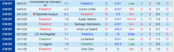 + Thống kê 10 trận gần nhất của Palestino