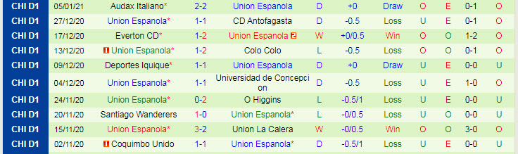 + Thống kê 10 trận gần nhất của Union Espanola