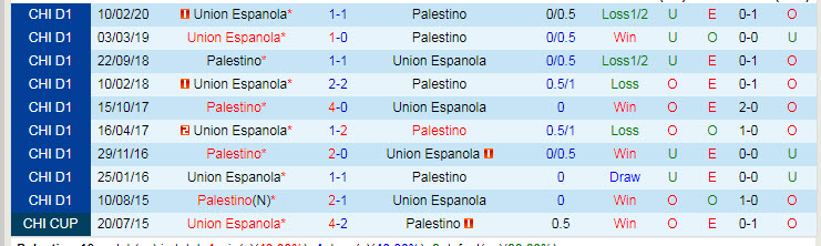 Phong độ và thống kê đối đầu Palestino - Union Espanola gần đây: